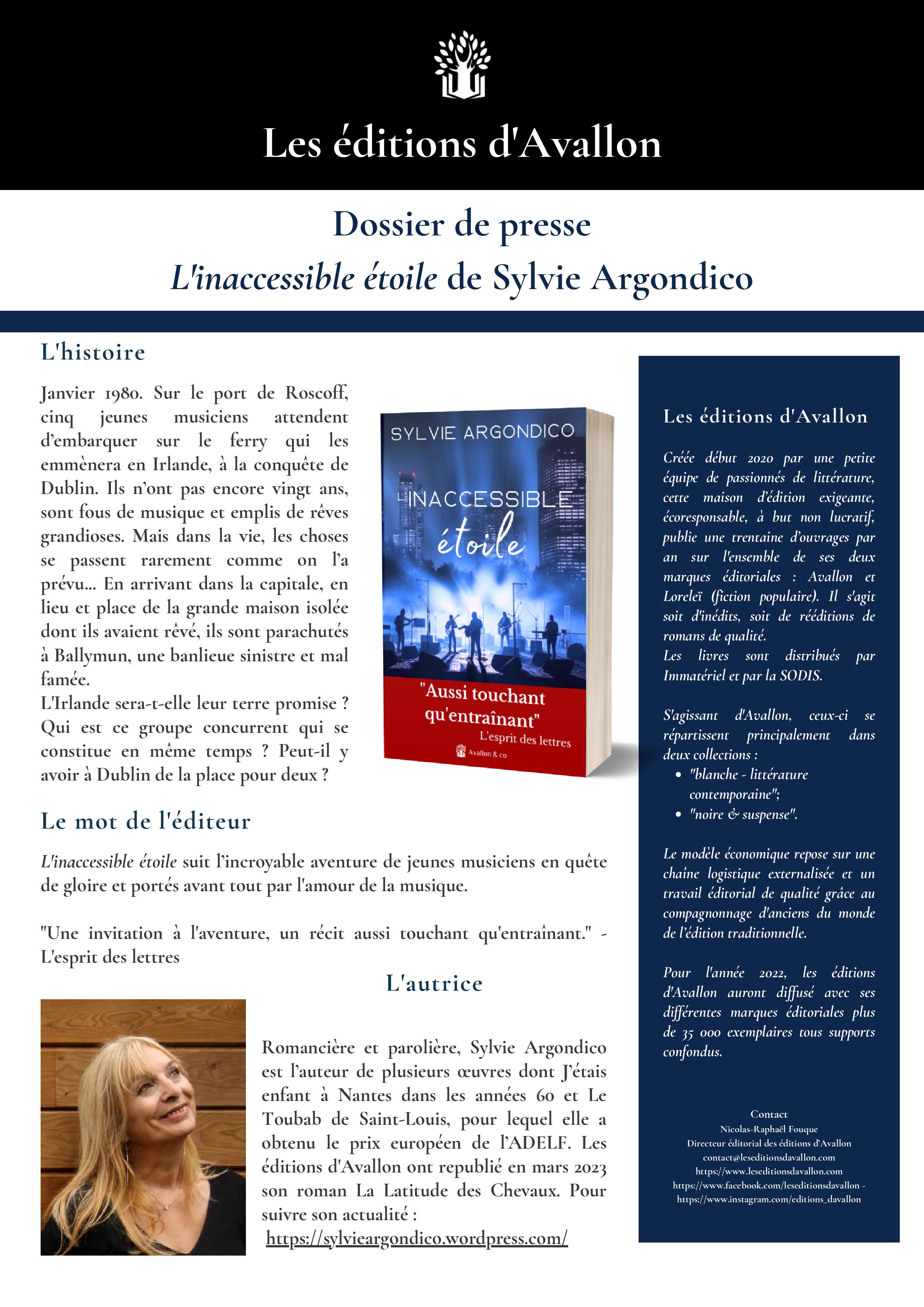 Parution de L’Inaccessible étoile ! Publié parbellargo27 octobre 2023Publié dansNon classé Aujourd’hui, 27 octobre, mon nouveau roman, « L’inaccessible étoile », paraît aux éditions d’Avallon ! Partager : Cliquer pour partager sur X(ouvre dans une nouvelle fenêtre) X Cliquez pour partager sur Facebook(ouvre dans une nouvelle fenêtre) Facebook J’aime chargement… Similaire
